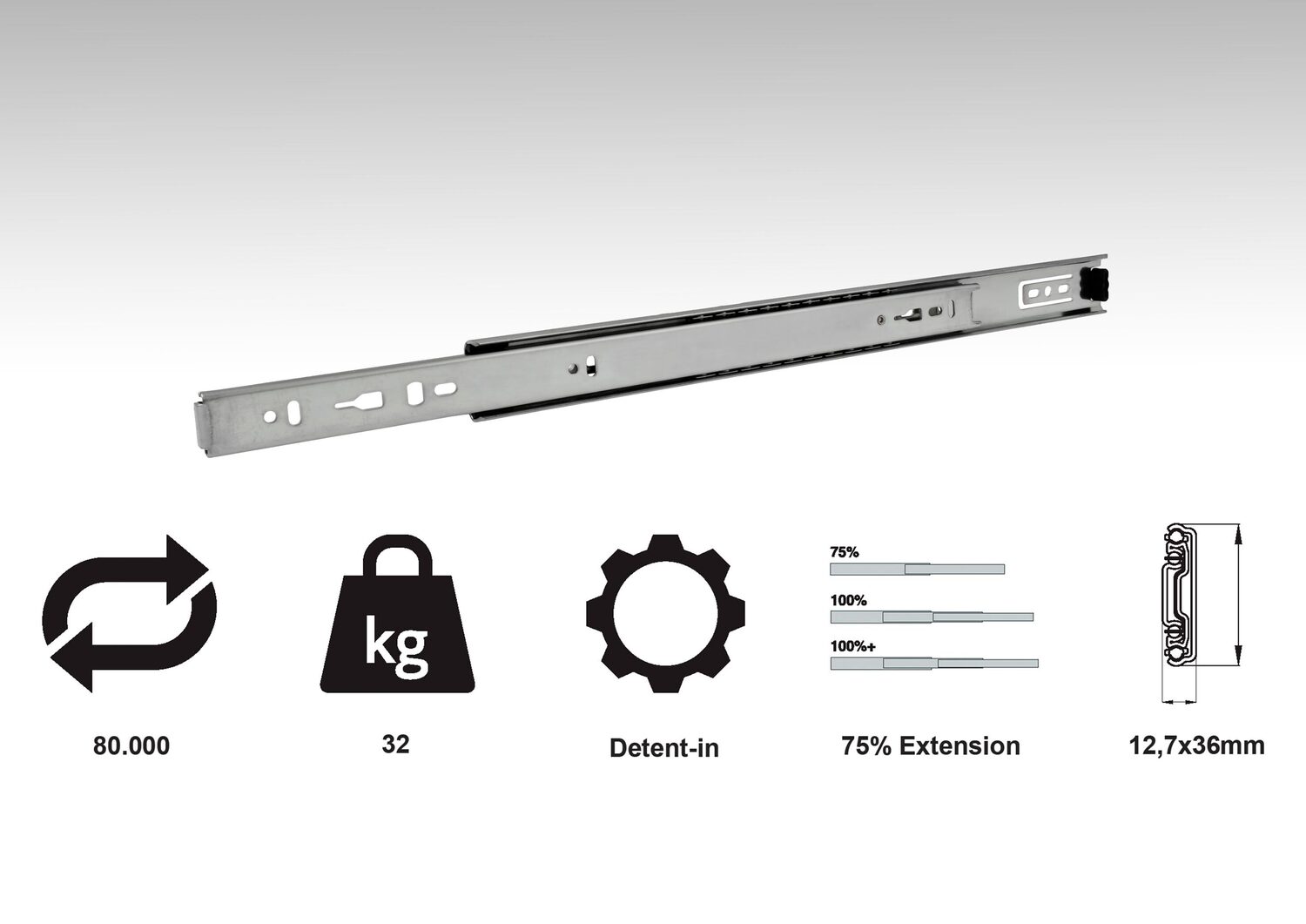 Guide di estensione 75% per carichi medi da 32 kg